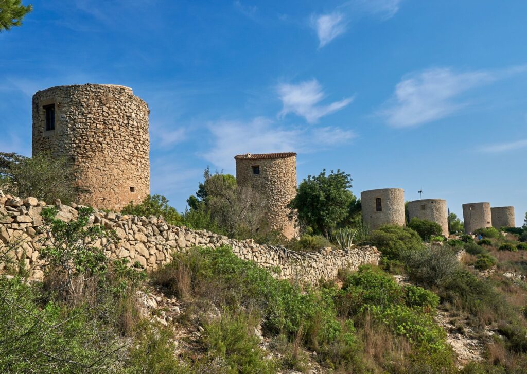Une jolie ballade dans une pinède entre mer et colline, bordée par ces moulins anciens qui veillent sur Javéa.
