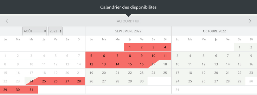 Low season between April 30 and May 28 and between Oct. 1 to Oct. 29: 0000€/week (from Saturday to Saturday).